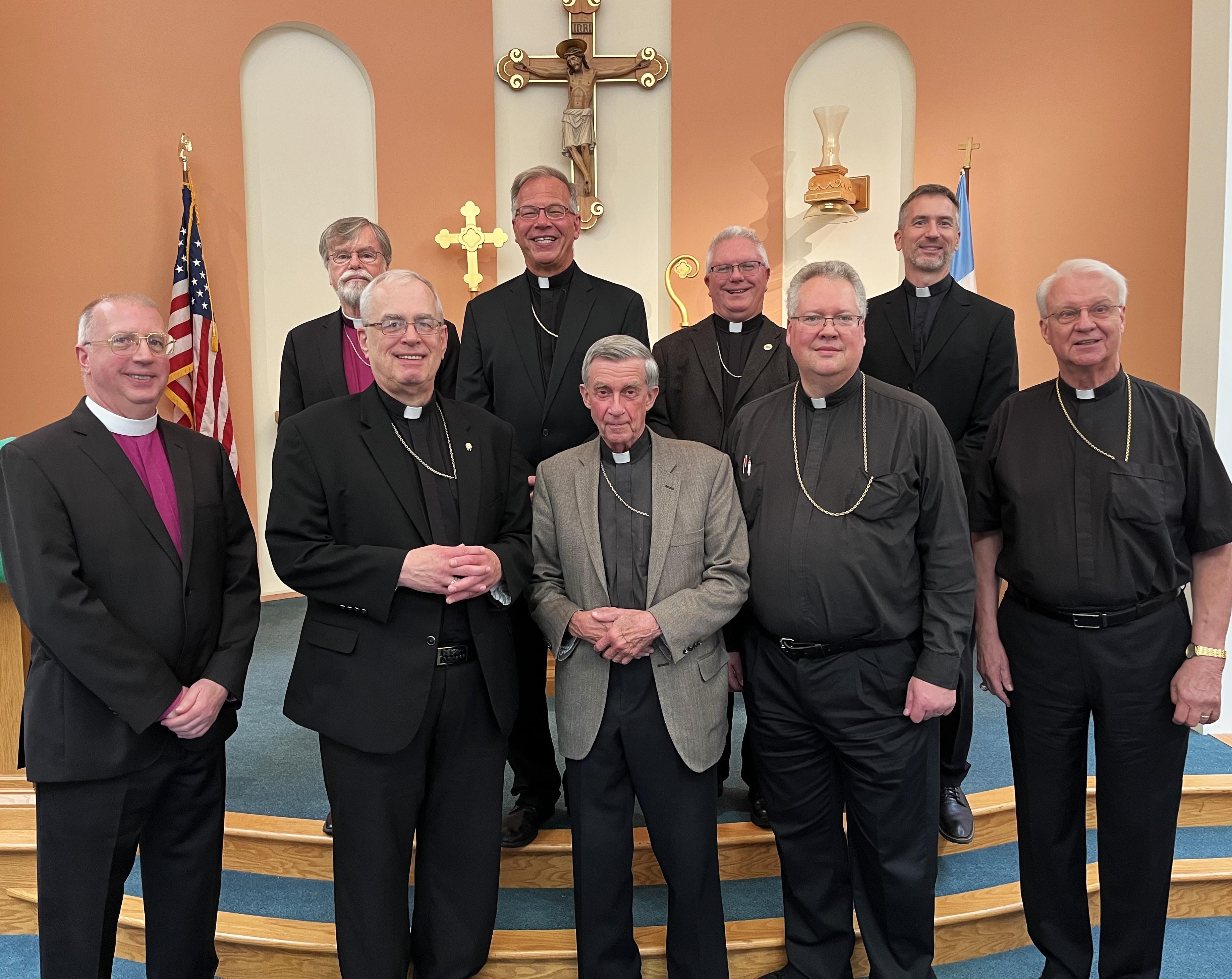 Members of the Dialogue Group who met in Scranton included (bottom row L-R): Archbishop Mark Haverland (ACC), Bishop Paul Sobiechowski (PNCC), Bishop Paul Hewett (ACC), Prime Bishop Anthony Mikovsky (PNCC) and Bishop Bernard Nowicki (PNCC); top row (L-R): Bishop Brian Marsh (ACA), Bishop John Mack (PNCC), Father John Kowalczyk (PNCC) and Canon Jonathan Foggin (ACC).